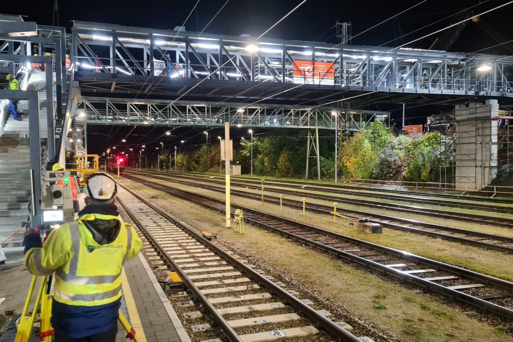 Nächtliche Gleisvermessung und Bestandsaufnahme im Bahnhofsbereich